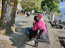Merci beaucoup d’être venu me voir et de m’avoir parlé ». Passante à Montreux. Seraina raconte : « Avant même la fin de notre journée d’intervention, je savais que nous devions encore aller voir cette jeune femme assise à côté de la pierre. Nous étions deux et, dans le cadre d’une semaine d’intervention, nous avons abordé des touristes à Montreux. Nous avons